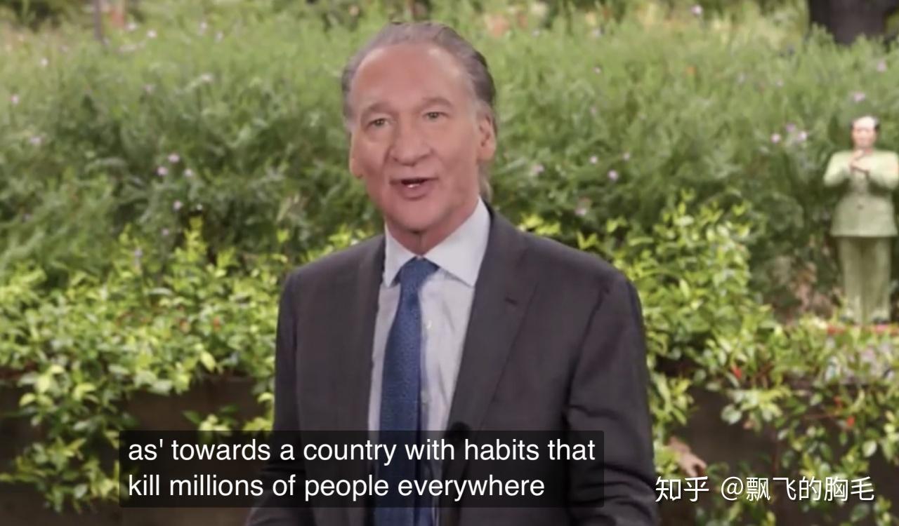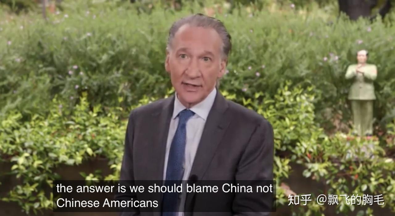 - 在HBO节目Real Time with Bill Maher里,主持人Bill Maher说:“我们应该称新冠病毒为中国病毒,因为病毒起源于中国。这个国家有着害死过百万人的习惯。这不是从中国传出来的第一个病毒了 — SARS,禽流感,香港流感,亚洲流感”。